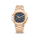 - Case: 40.5 mm 18K rose gold case with alternating polished and satin-brushed surfaces, sculpted in the Nautilus’ signature porthole-inspired shape.