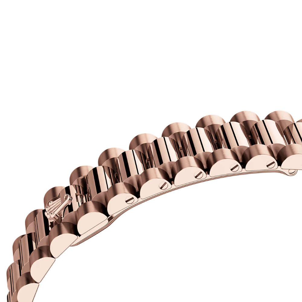 • Bracelet: President bracelet in matching Everose gold, with semi-circular three-piece links, providing both elegance and comfort.